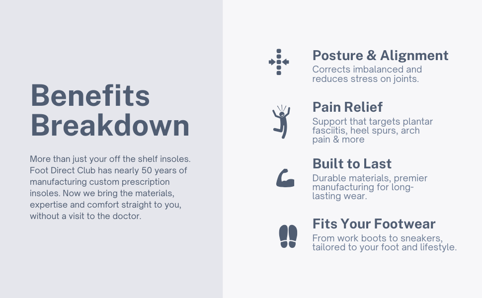 Stay pain-free at work or home with Everyday Custom Insoles. Discover the difference of truly custom orthotic insoles made just for you. Unlike off-the-shelf inserts, our insoles are handcrafted in the USA using your unique foot impressions to deliver unmatched comfort, support, and durability.